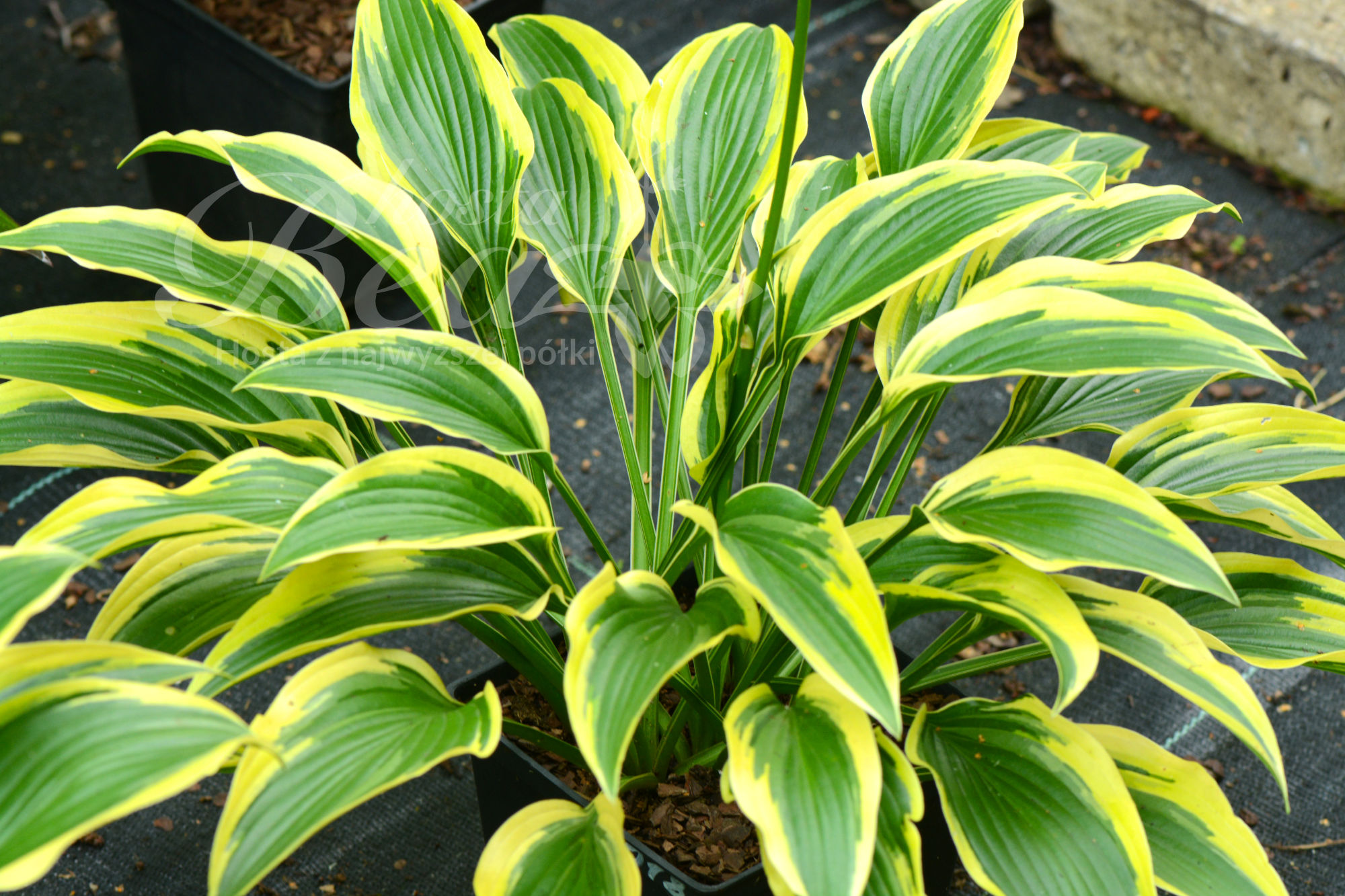 Hosta Exotic Presentation to majestatyczna odmiana o wazowym pokroju kępy, kontrastowej kolorystyce liści i dobrym tempie wzrostu.