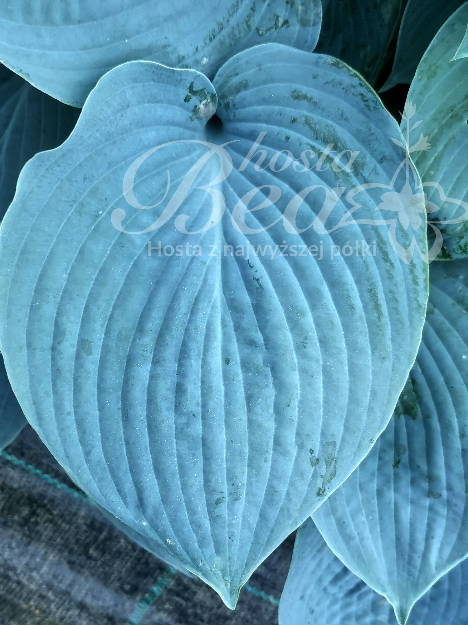Liście: szerokoowalne, w podstawie sercowate, z ostrym czubkiem, długości 18 cm i szerokości 16 cm, sztywne, matowe, pokryte nalotem woskowym, intensywnie niebieskie. Na stanowiskach z większą ilością słońca liście szybciej przybierają barwę ciemnozieloną. Bardzo atrakcyjne, kontrastowe kolory. Kolorystyka tej odmiany w bardzo dużym stopniu zależy od stanowiska w ogrodzie. W jasnych miejscach rośliny dużo szybciej będą traciły niebieską barwę.
